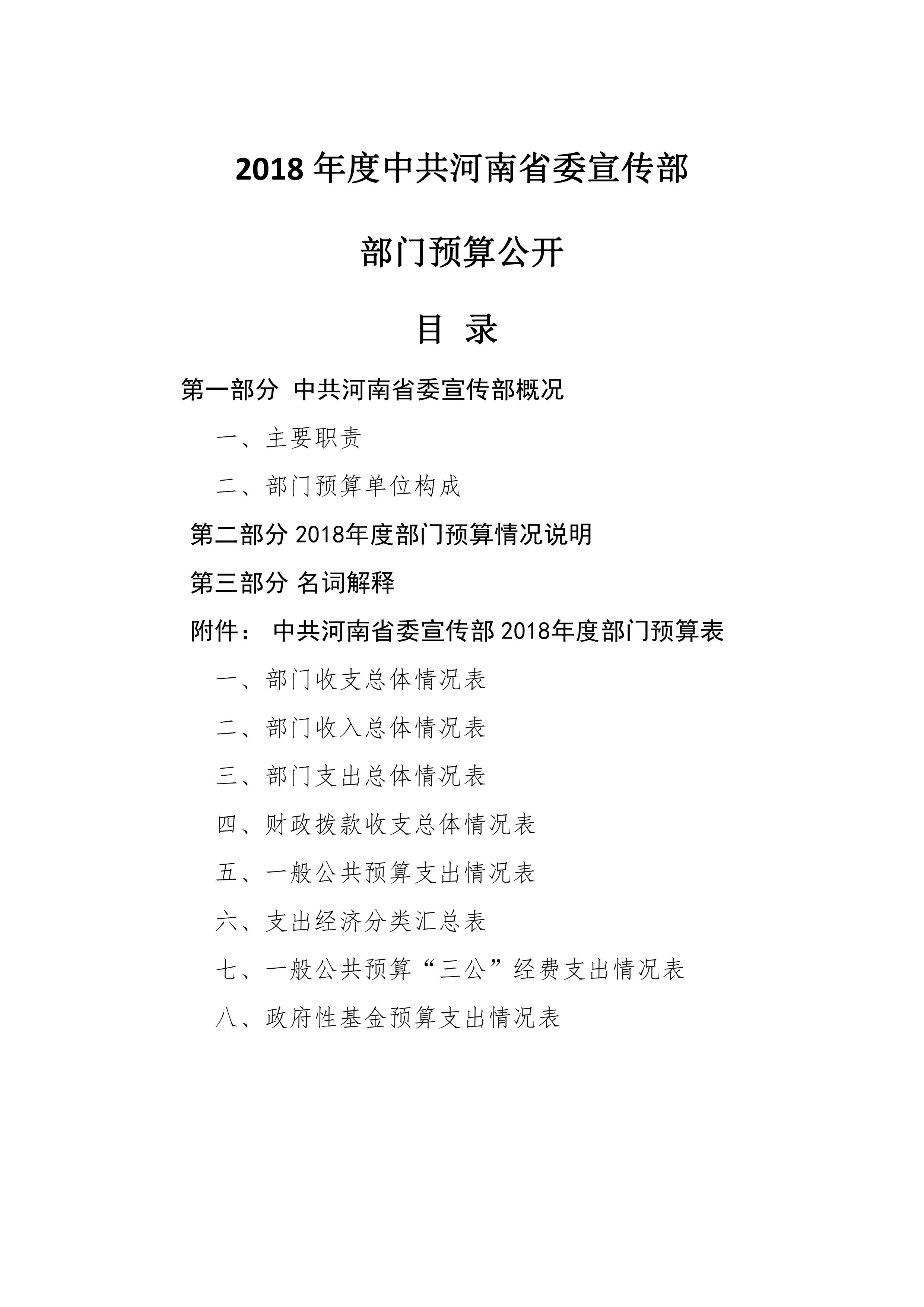 2018年度中共河南省委宣傳部部門預(yù)算公開